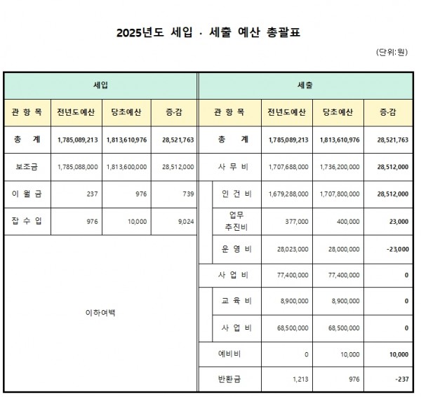 사회적협동조합 충주돌봄 노인맞춤돌봄서비스 2025년 본 예산서를 공고합니다.